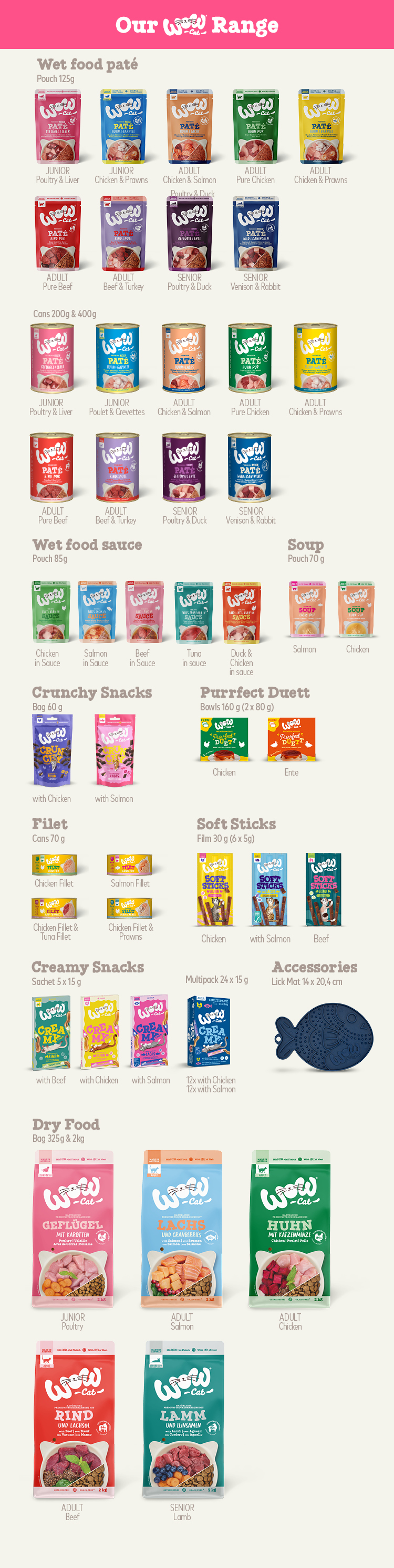Attractive prices without compromising on quality.With our newest family member, WOW CAT, we now also offer cat food with an impressive WOW effect.